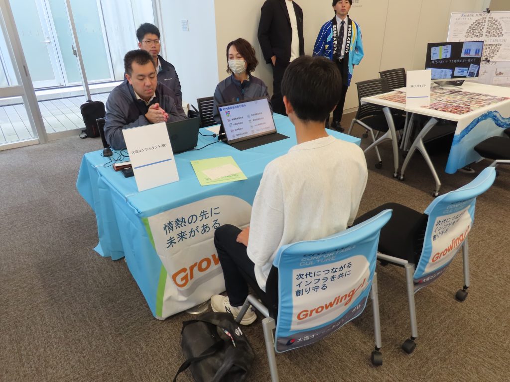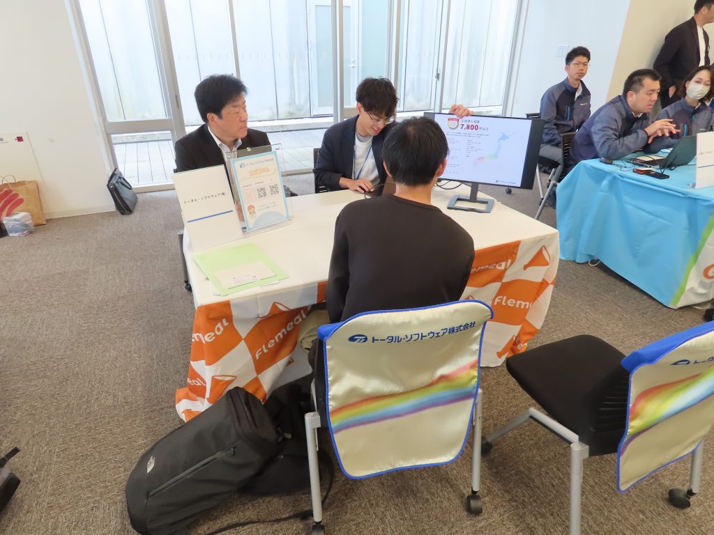 本イベントは、鹿児島県内の企業と学生が直接対話できる貴重な機会。会場にはさまざまな業種の企業が集まり、それぞれのブースでは、企業の魅力や仕事内容などが紹介されました。